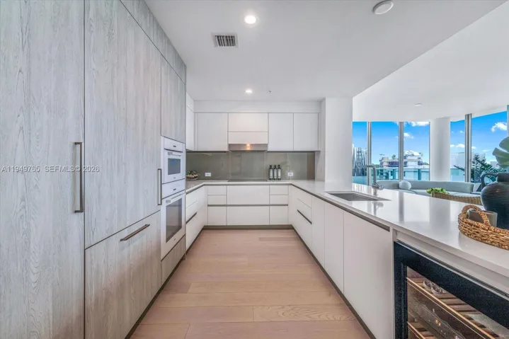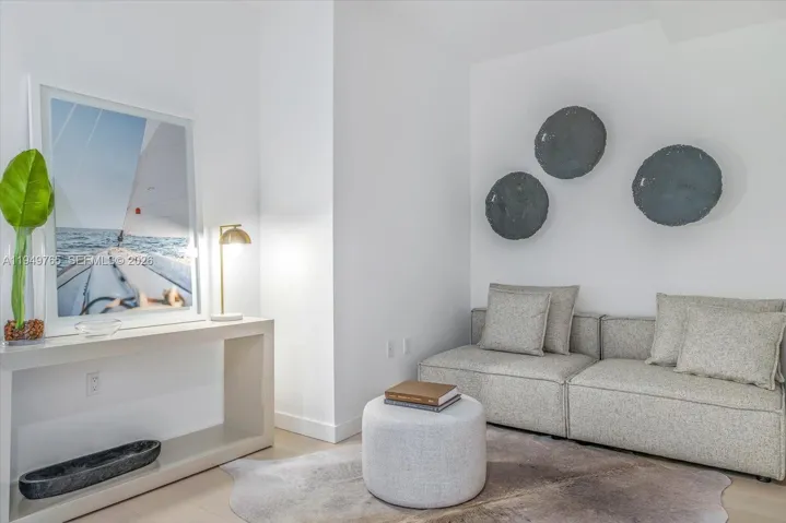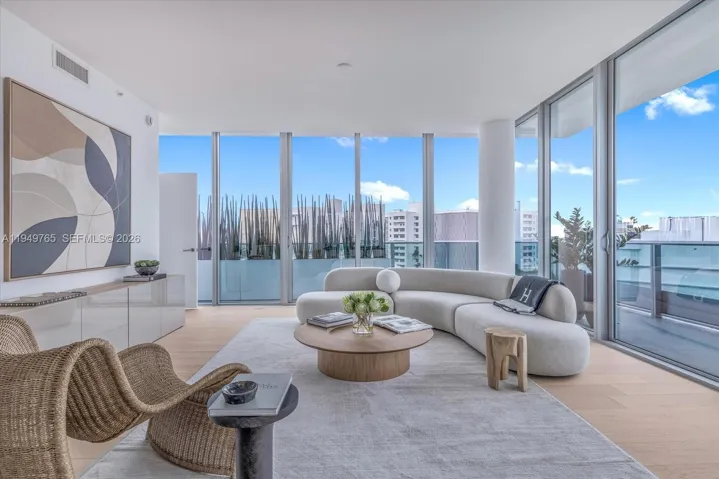 The Parkview Penthouse at La Baia South is a quiet, elevated residence where proportion, materiality, and light shape the design. Located on the eighth floor, this three-bedroom residence with den spans 2,068 interior square feet, complemented by 399 square feet of wraparound private outdoor space. Interiors feature imported European wide-plank wood flooring, ten-foot ceilings, and floor-to-ceiling, impact-resistant glass that brings in natural light and frames park-facing views with select water sight-lines from the terrace. The kitchen is thoughtfully integrated into the living space with custom European cabinetry, quartz stone countertops, a pantry, and a full Miele appliance package. Fixtures and finishes throughout the residence are curated by New York–based Durukan Design, with Hansgrohe fittings providing a refined, modern finish. Bathrooms are appointed with natural marble stone flooring, glass and chrome showers with dual rainfall showerheads, and custom European vanities. In-residence laundry includes a Miele washer and dryer, completing a residence defined by architectural clarity and carefully selected materials. La Baia is the latest project from visionary New York developer Ian Bruce Eichner who is credited with placing Miami Beach’s prestigious South of Fifth neighborhood on the map with the arrival of the Continuum South Beach. Upper Penthouse 02 comes with storage unit. Dock slips available for sale. Sold separately.