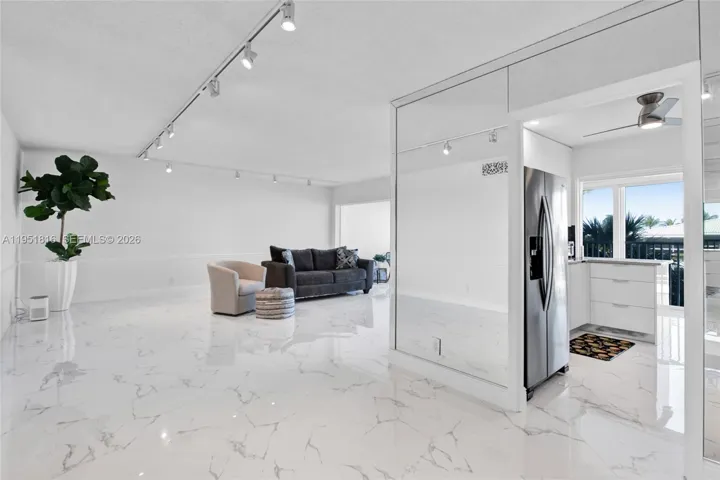 MOVE IN READY UNIT! Welcome to The Wilshire East, a premium boutique waterfront residence. Perfectly positioned near top-rated schools, beach, upscale shopping, & acclaimed dining, this exceptional location offers the ideal balance of tranquility& convenience. This building features just 46 residences & offers sought-after amenities including an indoor garage, ample guest parking, extra storage, a heated saltwater pool,& a metal roof. The building has an inside common area w/ kitchen area, seating area &tv as well as an outside common area w/ seating area and grill for resident usage. A true boater’s dream, the property provides direct ocean access with dockage available for vessels up to 55 feet, complete w/water& electricity at an affordable rate. This beautifully updated 2-bedroom, 2-bath residence reflects true pride of ownership and will impress from the moment you enter. Over $50,000 in upgrades include elegant porcelain flooring, a modernized kitchen with sleek appliances, updated electrical&a bright open layout designed for effortless living. Floor-to-ceiling impact glass doors &windows spanning 28 feet flood the space with natural light while framing serene waterfront views. The interior square footage is larger than reflected on the tax roll, offering even more space to relax and entertain. The building has successfully completed its 50-year certification, providing peace of mind&long-term value. Rental permitted after two years of ownership. Washer& Dryer in unit.