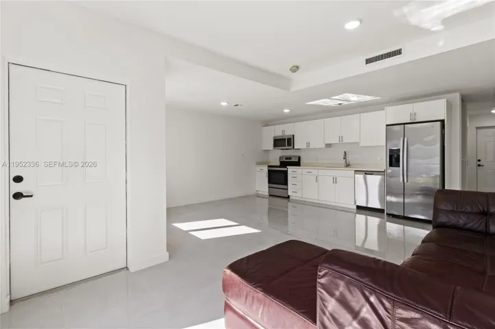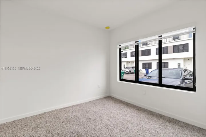 Be the first to occupy this stunning 4-bedroom, 3-bath townhome. This concrete-built home features impact windows, a private rooftop terrace, and two dedicated parking spaces. Inside, enjoy modern finishes including quartz countertops and an open-concept kitchen equipped with stainless steel appliances. The primary suite offers a full bathroom, walk-in closet. A versatile flex room on the ground floor includes a closet and full bath — perfect as a bedroom, home office, or in-law suite.