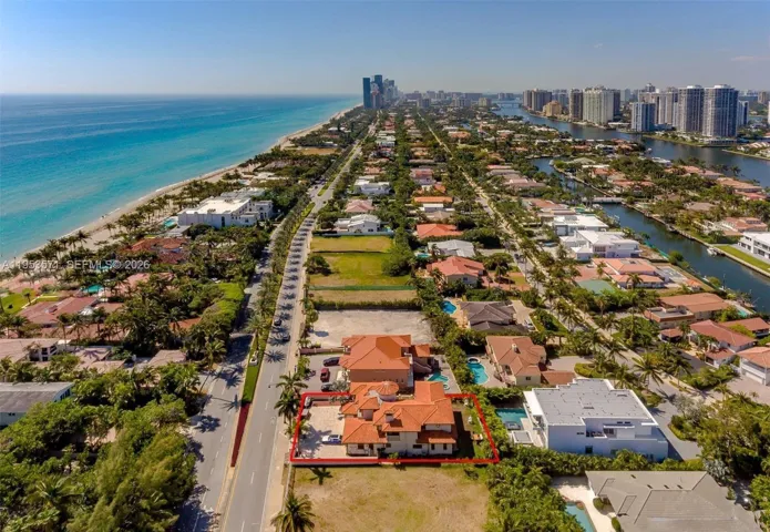 This gorgeous house is just across the ocean in the prestigious private neighborhood of Golden Beach. This impressive Mediterranean 2-story mansion with 6 bedrooms and 4 1/2 baths (over 5,700SF) was fully renovated to the highest standards. Smart interior floor plans start on the ground level: a spacious kitchen, a large laundry room, a formal dining area, a living room, additional 1 bedroom on the ground level (great for a live-in maid or a teenager) with the convenient access to the private pool, backyard and barbecue area. There are 2 bedrooms downstairs (plus one additional bedroom for office or maid) and 4 bedrooms upstairs. 2-car garage. Golden Beach community provides full security, a private beach, 2 tennis courts, basketball and volleyball courts, a children playground.