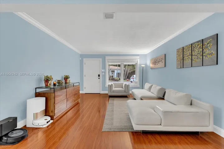 Welcome to this beautifully updated single-story residence in coveted North Gables. This 2-bedroom, 2-bath home offers approximately 1,493 SF of bright, open living space with warm wood flooring throughout the main living areas & bedrooms, stone flooring in the Florida Room. A remodeled kitchen features stainless-steel appliances and seamless flow for everyday living and entertaining. The home opens to a private, stoned-faved patio and garden-ideal for indoor/outdoor enjoyment. A true Florida Room provides flexible space for home office, lounge, or guest area. Additional features include hurricane-impact windows, alarm and security camera system, a 1-car garage with driveway parking & charging station. Close vicinity to shops, dining, parks, and top-rated schools-This is quintessential Coral Gables Living.Whether you’re seeking a turnkey home or an investment in one of Miami’s most charming neighborhoods, this property represents a rare opportunity to live in a truly special part of Coral Gables.