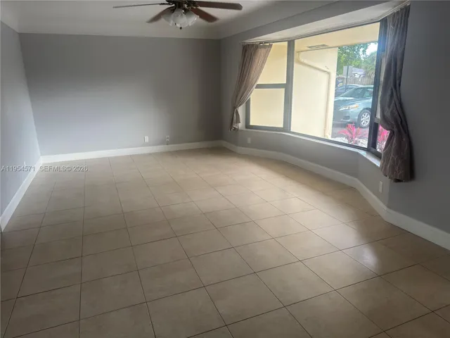 The home features all hurricane impact windows and doors, 2018 roof, freshly painted interior and exterior, tile floors in living and dining areas, and laminate flooring in the bedrooms. Updated kitchen with Corian countertops and remodeled bathrooms with upgraded finishes make this home move-in ready.