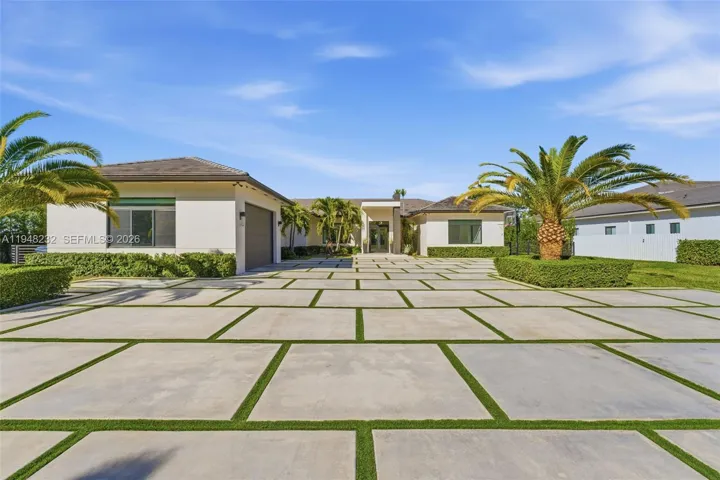 Elegant, expansive, and perfectly positioned in a peaceful neighborhood, this stunning newer-construction luxury estate offers 6 bedrooms, 7 bathrooms, and 5,850 sq. of refined single-story living. Designed with an open-concept layout, the home features soaring ceilings, exquisite chandeliers, and sophisticated architectural details that create a bright, welcoming atmosphere throughout. The thoughtfully planned split layout enhances privacy, while the primary suite serves as a true retreat with a spacious walk-in closet and spa-inspired bathroom. Ideal for entertaining, the designer kitchen and elegant living spaces are complemented by a custom wine display and seamless indoor-outdoor flow. The resort-style backyard includes a heated pool, outdoor BBQ area, and ample space to add a guest house, private gym, or pickleball court. Built for both luxury and resilience, the property offers spray-foam roof insulation, a full-house gas generator, storm drainage surrounding the home, Sonos sound system, evenly distributed Wi-Fi, and security cameras. Additional highlights include a massive driveway, lush tropical landscaping with coconut, guava, and ciruela trees, abundant natural light, and no HOA. Conveniently located near top-rated schools, dining, and major conveniences, this exceptional residence delivers privacy, sophistication, and endless possibilities in a highly sought-after neighborhood.