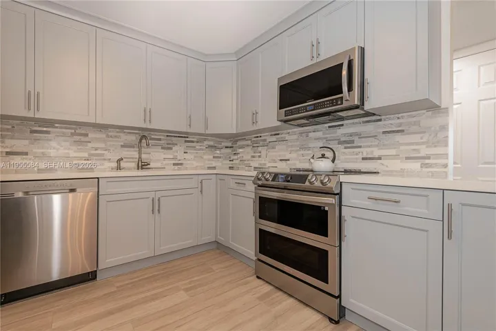 Totally remodeled 2/2 condo in superb move-in conditions, a perfect blend of comfort and beach style. Elegant porcelain and marble floors along with stainless steel appliances in a stylish and functional kitchen. The fine materials and modern colors are enhanced by natural light streaming in from the balcony. Both bedrooms provide ample space, with the primary suite serving as a private retreat with an updated bathroom and a walk-in closet. OVT is suitable for all ages and allows pets. Amenities include bike storage, gym, sauna, on-site management, pool overlooking the canal which faces the luxury style of the Golden Isles neighborhood. Conveniently located East of US1 very close to the local plazas, the beach, highways, Mardi Gras Casino, Aventura Mall, and The Gulfstream Village. This is the perfect opportunity to have your own home!
