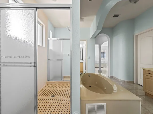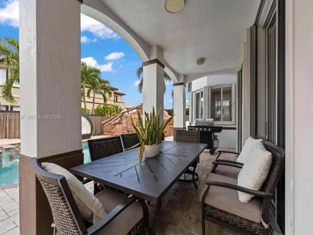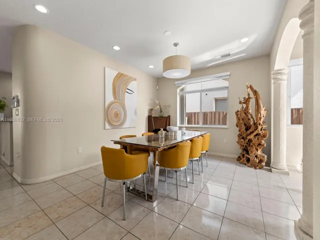 The backyard offers a private resort-style pool with jacuzzi, waterfall, waterslide, and marble pavers, ideal for outdoor enjoyment and entertaining. Additional features include a remodeled 2-car garage with modern epoxy flooring and updated lighting, as well as accordion hurricane shutters on all windows and glass doors. Property is conveniently located near shopping centers and major roadways. Easy to show! Schedule your private tour today.