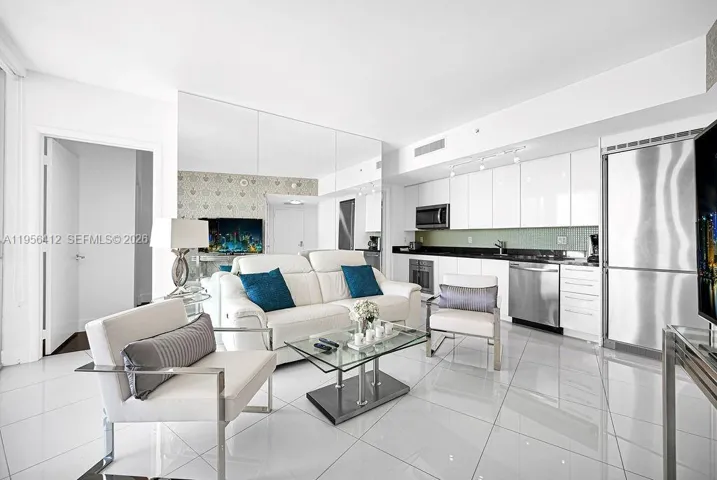 Experience breathtaking city views from the 48th floor in this luxurious 2-bedroom, 2-bath condo at Mint. This furnished 930 sq. ft. unit features a smart split floor plan, floor-to-ceiling windows, and a private balcony offering panoramic skyline and river views. The modern kitchen is equipped with sleek cabinetry and stainless steel appliances, and the unit includes white porcelain tile flooring, washer and dryer, and one assigned parking spot. Residents enjoy 5-star amenities including a heated pool, jacuzzi, spa, gym, sauna, steam room, business center, game room, dog park, and children’s playground. The building offers 24/7 security, concierge service and valet parking. Prime location near Brickell City Centre and only 15 minutes from Miami International Airport.
