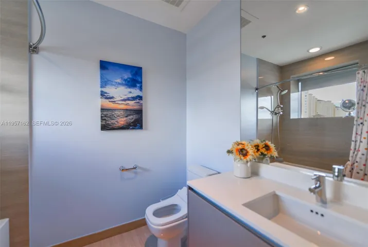 Designed by architect Carlo Ott, Echo Aventura offers privacy & comfort with private elevators and oversized balcony terraces with gas grills for outdoor entertainment. It features 3 bedrooms, 4,5 bathrooms, a maid’s quarters, and custom walk-in closets. This unit is ready for move-in and features porcelain floors and an upgraded kitchen with new countertops. Amenities include an attended waterfront pool, valet service, a fitness center, a spa, and a coffee bar.