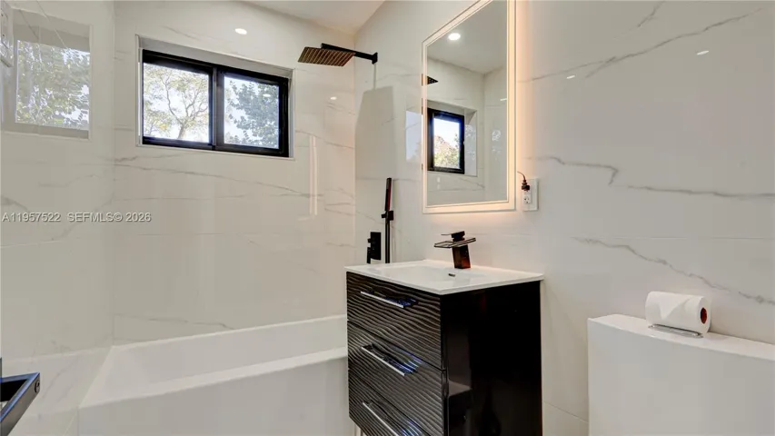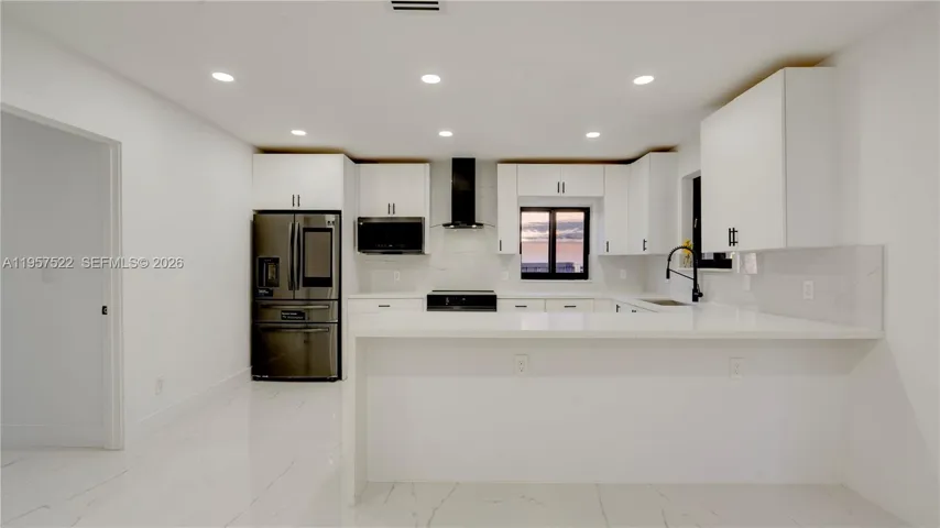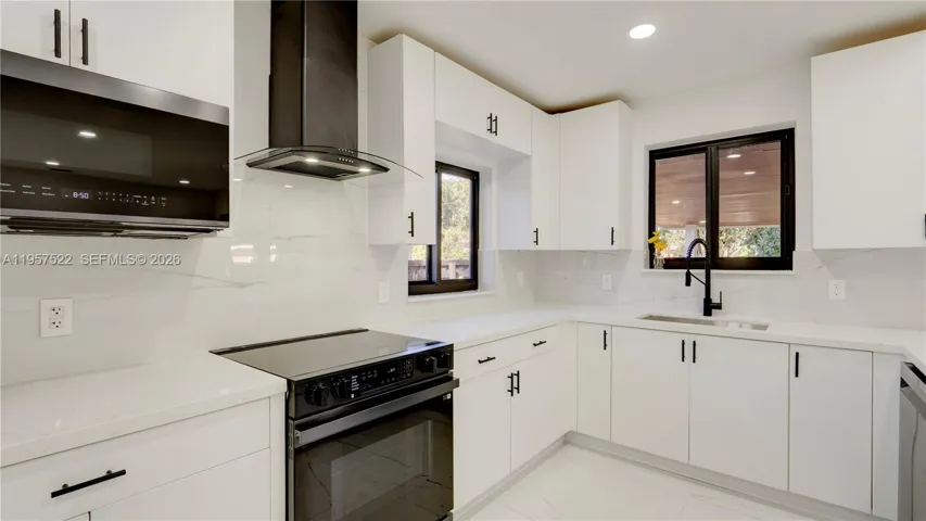 This move-in ready 3BR/2BA home was designed with family living in mind. The split-bedroom layout offers privacy for all, with a spacious primary suite set apart featuring a large bathroom with double sinks & a beautiful modern shower. Enjoy a generous living & dining area + a versatile spare room ideal for a family room, playroom, home office, or study. The modern kitchen showcases brand-new cabinets & stylish countertops. Additional highlights include a large laundry room with washer and dryer hookups. New electric water heater, new sprinkler system, and New impact windows and doors throughout. Relax or entertain in the covered patio with recessed lighting perfect for BBQs and gatherings with family and friends. A wonderful place to call home, just beautiful remodeled with permits.