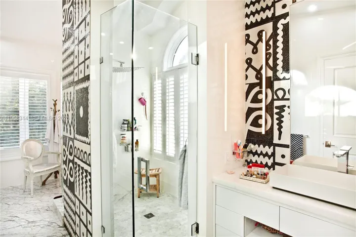 Crown jewel of Paloma Dr. on an oversized lot with exceptional privacy and only one rear neighbor. Custom home remodeled in 2016 featuring smart-home technology and contemporary luxury finishes throughout. New roof 2025. Open living and dining areas showcase 39” x 39” Porcelanosa tile floors, dropped ceilings, and expansive views of the outdoors. Gourmet kitchen with Viking and Miele appliances, Calacatta marble island and countertops. Breakfast area opens to family room and covered terrace with outdoor kitchen, pool deck, spa, and large yard. Wine cellar. Two downstairs bedroom with shared bath. Upstairs office opens to primary suite with three custom closets featuring leather finishes and a stunning bath with Bisazza mosaics. Two additional upstairs en-suite bedrooms. Mezzanine staff quarters and storage. Impact windows and doors, two staircases, fireplace, motorized shades, side driveway, and two-car garage. *New Pictures coming soon.