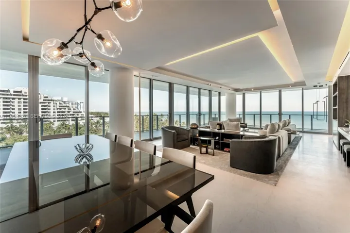 Extensively renovated and move-in ready 4-bedroom, 5.5-bath corner beachfront residence at Oceana Key Biscayne, offering refined architecture, thoughtful detailing, and seamless indoor-outdoor living. Floor-to-ceiling glass fills the home with natural light and frames ocean, bay, and village views enjoyed from every room and the wrap-around terraces. Architectural elements include shadow reveal wall details, layered architectural lighting and Res Italia custom doors. Custom millwork is carried throughout, with Giellesse Italian closet systems and shelving as well as Casabath Italian bathroom cabinetry.