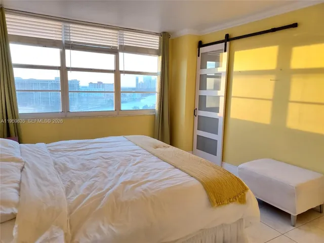 “Million dollar view” of the intracoastal waterways, ocean, city lights! Unobstructed views from the living room, oversized balcony, master bedroom windows! Enjoy the sunrise & the ocean breeze from the 14th floor! Just minutes to the beach, which is also walking distance! Unit is located on the unobstructed side of the building (facing South-no street, parking garages, rooftops blocking any views). Completely furnished home, dual closets in master BDR, contemporary barn door for the master bathroom, sleeper sofa and a convertible chair (converts into a twin size bed) in living room. All tiled. Stainless kitchen appliances. All cooking /dining ware included. Nest thermostat, electronic door lock. Min 650 credit score, no pets (HOA policy), no smoking, 1 year lease. 1 assigned parking