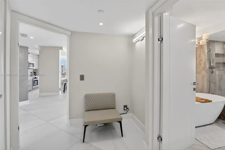 Dramatic 3-bedroom residence with 2 half baths, completely renovated and truly turnkey. Featuring elegant 4’ x 4’ matte-finish rectified porcelain flooring throughout, this home offers a bright open layout and refined contemporary finishes. The stunning open kitchen showcases waterfall select quartz countertops, state-of-the-art cabinetry, and Bosch built-in appliances, & top of line water filtration system—perfect for entertaining and everyday luxury.