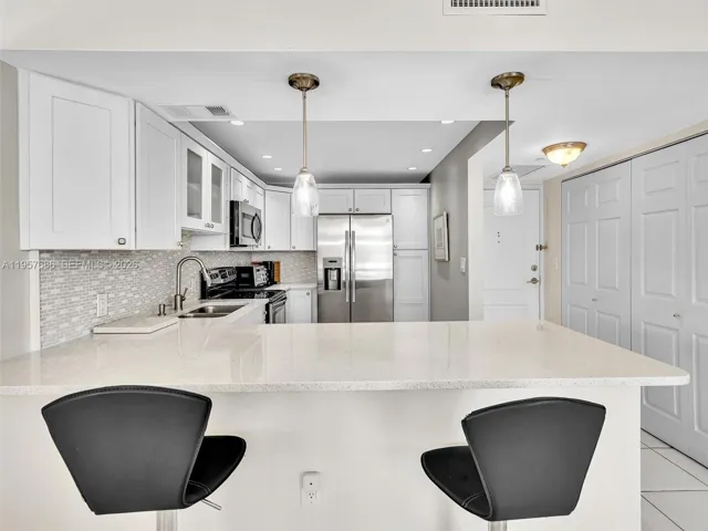 Location really sets this home apart. Enjoy Aventura’s lifestyle in this updated 2/2 at Eldorado! Newer kitchen, refreshed bathrooms. This model is Specious with bright living areas and spectacular open view of the Turnberry Isle golf course ~ lush, green and incredibly peaceful. Covered deeded parking, storage. and a 10 yr old AC. All special assessments paid in full by seller. New electric shades in LR, hurricane shutters.