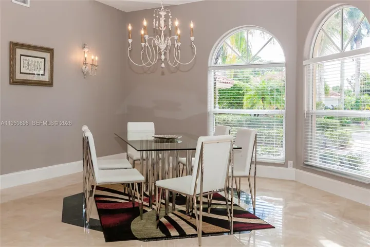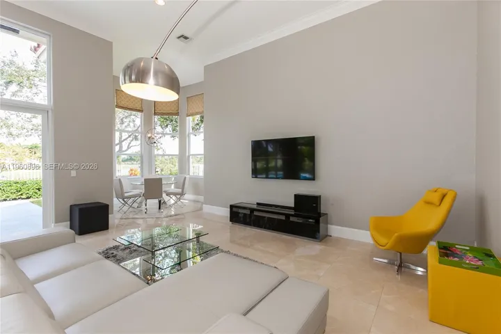 Captivating 5 bedroom/4.5 bath residence set in Weston Hills Country Club offers expansive golf and water views. Enjoy outdoor living with freeform pool and spa, surrounded by lush landscaping and a fully fenced yard which provides maximum privacy, ideal for entertaining or relaxing. The remodeled center-island kitchen showcases white Shaker-style cabinetry, a tumbled-stone backsplash, built-in Sub-Zero refrigerator, induction cooktop, and distinctive granite countertops. Marble flooring enhances the main living areas, while wood-look tile extends throughout all bedrooms. Four bedrooms feature en-suite bathrooms, with the fifth currently utilized as a office. The home is equipped with three energy-efficient A/C units and full impact windows and doors for hurricane protection. A three-car side-entry garage and circular driveway offer ample room for parking. Lawn and pool maintenance are included. Zoned for top-rated schools. This is a must-see property!