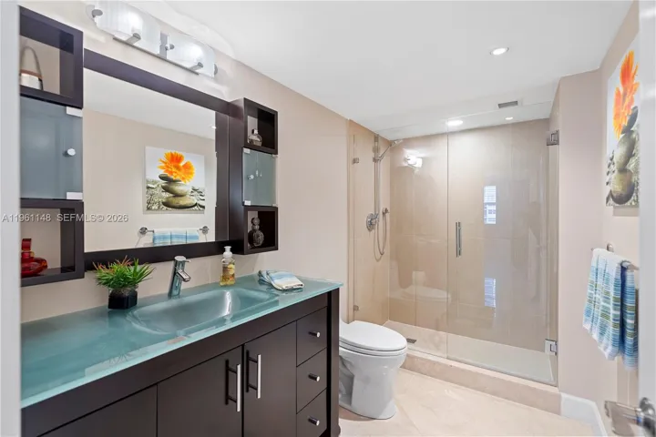 Additional features include in-unit washer and dryer, hurricane-impact windows, and an assigned covered parking space. Newly completed glass balconies invite you to unwind outdoors while taking in breathtaking city, ocean, and Intracoastal views.