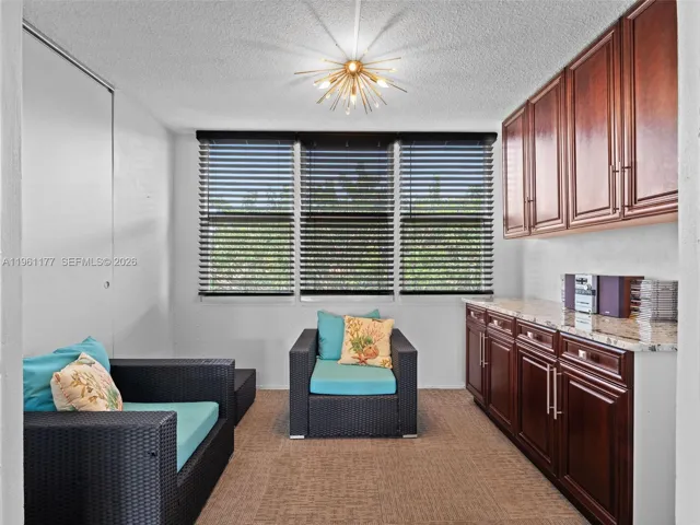 Inside features a bright open layout with impact windows, fully remodeled primary and guest bathrooms, updated lighting and interior paint, newer electrical panel and water heater, solid wood Kitchen Craft cabinets with Corian countertops, walk-in closets in both bedrooms, and an enclosed patio ideal for extra living space. Sold furnished (excluding artwork), including dining furniture, living room seating, patio furniture, guest bedroom beds with newer mattresses, and primary bedroom bed side tables and two dressers. Rentals permitted after 2 years. One assigned parking space plus guest parking. HOA includes water, sewer, trash, internet, cable with HBO, pest control, exterior maintenance, and resort-style amenities. Peaceful, well cared for, and easy to show.