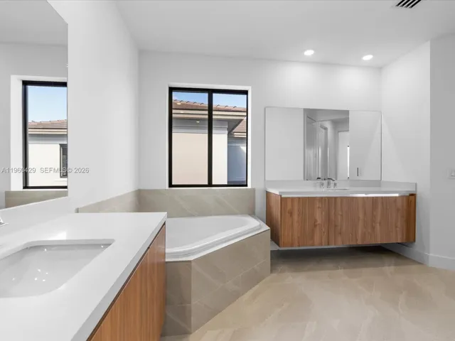 Experience elevated living in this stunning brand-new construction estate offering 4,152 sq ft under air in the exclusive gated community of Greenview at Presidential. Located in one of Aventura’s most desirable master-planned enclaves, residents enjoy resort-style amenities including a clubhouse, pool, fitness center, scenic trails, tot lot, private children’s park, basketball and soccer courts, outdoor entertainment areas, and a long, walkable sidewalk perfect for exercising or kids riding bikes, all with 24/7 security—just minutes from Aventura Mall, beaches, and top dining. This 5-bedroom, 4.5-bath home with a 3-car garage sits on the largest lot in the community, offering over 150 feet of backyard frontage—an exceptional and rare feature. Ideally positioned for maximum privacy, the home backs to a peaceful preserve with no neighbors behind. The expansive backyard is an entertainer’s dream, featuring a brand-new private pool and ample space for gatherings, barbecues, or quiet relaxation. Inside, enjoy soaring ceilings, an open-concept layout, and sleek modern finishes throughout. The gourmet kitchen anchors the living space, perfectly designed for both daily living and entertaining. A rare opportunity to own a premier residence in one of Aventura’s finest new developments. Schedule your private tour today.