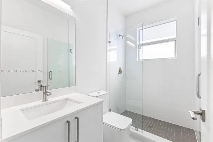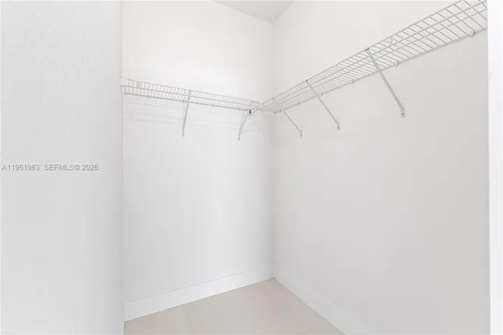 Features 32×32 ceramic tile floors, impact windows & doors, well design home, walk in closet per room, frameless