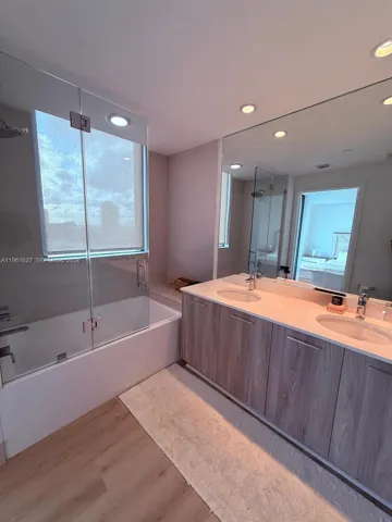 The apartment features two private balconies with spectacular views of the Miami skyline and the bay—perfect for morning coffee or relaxing at sunset.