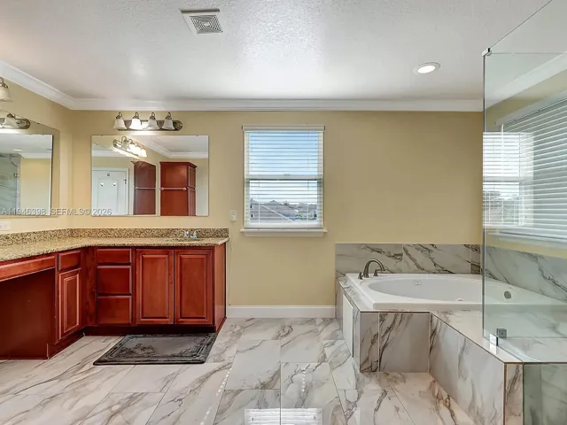 Exquisite 6 Bedroom 4.5 Bathroom, 3-car garage home with approx. 4000 of living sqft. A terrific floor plan with plenty of natural light throughout and quality upgrades galore. Features new 34×34” porcelain tiles throughout downstairs, quality wood flooring upstairs, and remodeled bathrooms. Downstairs includes a mother & Law ensuite, eat-in kitchen with a double pantry overlooking the large family room, formal living & dining. Upstairs boasts a roomy loft, leading to three en-suites. An enormous master comes with a sitting area, jacuzzi tub, and rain shower. Property comes with advanced, fully paid solar panels that will drastically reduce your electric bill, an upgraded garage with AC, a house purification system, a house water filtration system, and an extensive security system. A must-see.