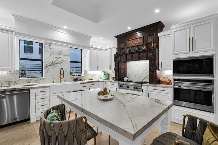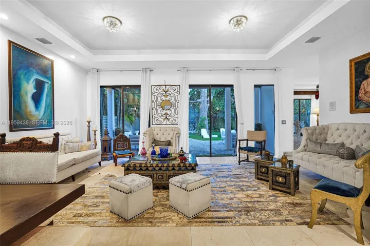 At $744/Sq-Ft, given the 4,433 total Sq-Ft, as per the Miami Dade’s Property Appraiser, this mini-mansion is one of the LOWEST PRICED properties per Sq-Ft in South Coconut Grove. Spectacular & elegant, 20′ ceilings. Walking distance to Coco-Walk village, restaurants, shopping and prestigious schools such as Ransom, Carrolton, St. Stephen’s, Plymouth, St. Hugh. Stunning beautiful banyan tree canopy adorns the front of the home. Crema Marfil marble floors throughout. Impressive, conversation piece, Indonesian stove hood, new marblelite counter tops, over-sized Sub-Zero refrigerator & freezer(separate units), Wolf gas stove oven & microwave, practically new Viking dishwasher, U-Line ice maker & wine cooler. Very private & secured with gorgeous aluminum gate & wood fence all the way around the property. New pavers, & artificial grass recently installed.Coral rock fountain for a serene backyard & plenty of space for a pool. Sauna. Plenty of parking area that can accommodate 5 cars inside the gate and another 5 on the outside of the front gate….great for entertainment and gatherings!