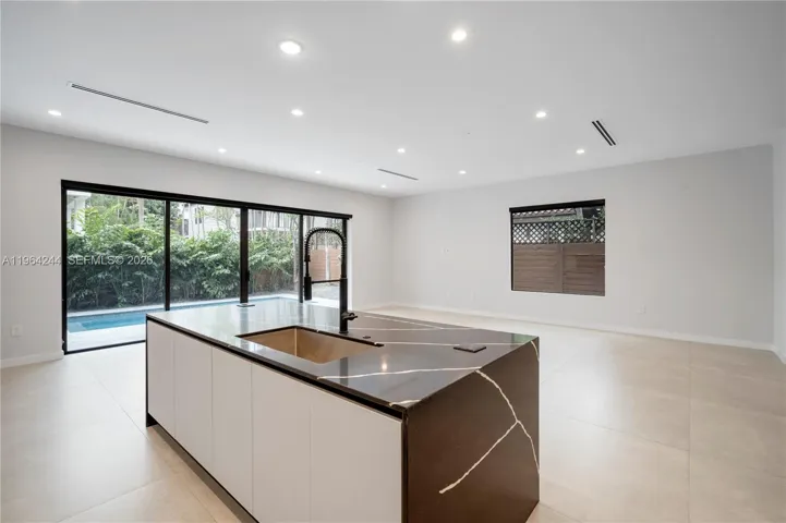 Boasting 10-foot ceilings on the first floor and thoughtful design throughout, the home features an ensuite guest bedroom with full bath plus a convenient powder room equipped with washer/dryer. The expansive chef’s kitchen shines with premium Italian cabinetry, dual sinks, dual dishwashers, appliance garage, 48” refrigerator/freezer, gas cooktop, and tankless gas water heater. Luxurious 48×48 imported porcelain tile floors and custom-built closets elevate every space.