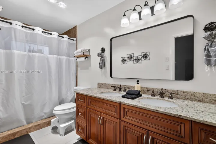 The private primary suite serves as a peaceful retreat, complete with a large walk-in closet and an en-suite bath featuring a dual-sink vanity and walk-in shower. Three additional bedrooms offer flexibility for family, guests, or a home office. Covered back patio—ideal for weekend barbecues or relaxing evenings under the Florida sky.