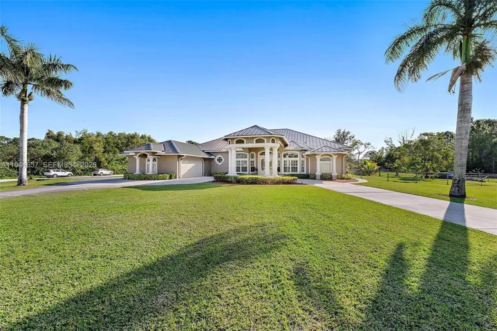 Nestled on 2.5 private acres, this beautifully updated estate blends modern comfort with peaceful outdoor living. The roof was replaced (2023), 4-car garage, & three driveways offer style & convenience. Inside, you’ll find 4 spacious bedrooms, a flex room/office, & a luxurious primary suite with coffered ceilings, wood floors, dual sinks, a massive dual-entry shower, & a freestanding tub. The chef’s kitchen, remodeled in 2021, features Quartzite counters, a large island, wine bar, steam oven, built-in coffee maker, & stainless-steel appliances. Step outside to your entertainer’s paradise — a screened-in pool (new pump installed – 2022), covered lounge, & a fully equipped outdoor kitchen with multiple grills, cooktops, sink, refrigerator, freezer & microwave. The fenced yard & backyard pond-fed sprinkler system complete this serene retreat. Newer AC & water heater. This stunning home offers the perfect mix of space, luxury & Florida lifestyle – don’t miss it!