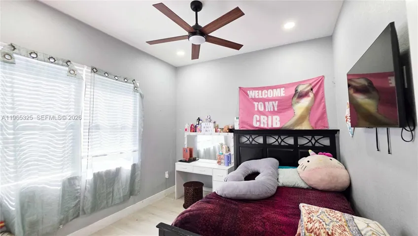 Discover this stunning 2024-built home in Montura Ranch Estate, Florida, featuring 2,142 sq. ft. of living space. This concrete home blends modern design with luxurious finishes and a functional layout. The living area is exceptionally spacious. Complemented by high ceilings that create an open, bright atmosphere. The home offers three bedrooms, two full bathrooms, and a versatile den that can also serve as a Florida room or additional workspace. The master bedroom measures 13×25 ft, with a spacious ensuite including a shower, soaking tub, and double vanity. The kitchen boasts wood cabinets and quartz countertops, along with high-end stainless steel appliances. Other highlights include a front porch, smoke detectors, a five-ton AC system, tile flooring, paved driveway, and an elegant gated entrance. All this sits on a private 1.25-acre lot, fully fenced and featuring fruit trees such as coconut, papaya, guava, and passion fruit, creating your own tropical oasis. With no HOA fees, this home offers comfort, privacy, and style in every corner.