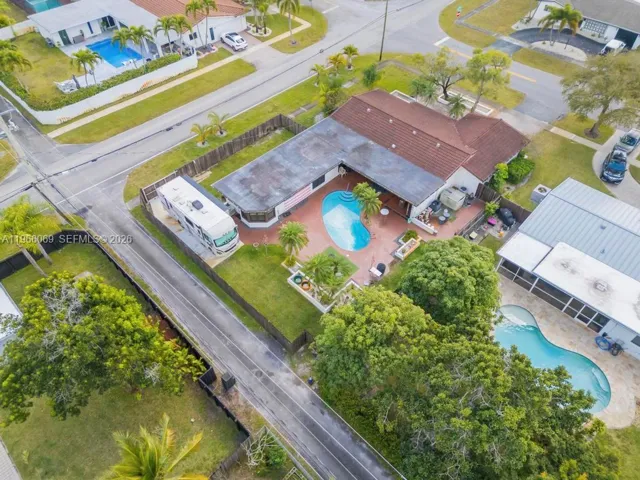 RARE CORNER LOT!! Beautiful 3-bedroom, 2-bath home situated on an OVERSIZED, fully fenced in corner lot with a heated pool in a prime location. This property features COMPLETE IMPACT WINDOWS AND DOORS, Newer Barrel Tile Roof (2019), Newer A/C (2021), New tile flooring, 2-car garage, 2-car driveway, and a rare additional concrete slab along the rear side of the property with easy side-gate access, a true boater and RV enthusiast’s dream! Perfect for storing boats, RVs, or trailers with convenient in-and-out access, plus the potential for additional parking income. The thoughtfully designed layout offers spacious living and dining areas and a large kitchen with eat-in space. The backyard feels like a private retreat, complete with a covered patio that opens to the pool and generous yard space. The expansive primary suite includes a large walk-in closet and a spa-style bathroom with dual sinks, separate shower, and whirpool tub. Ideally located next to a park, less than 10 minutes to the beach, and close to major highways, major airports, shopping, and dining – a one of a kind property in the heart of Hollywood!