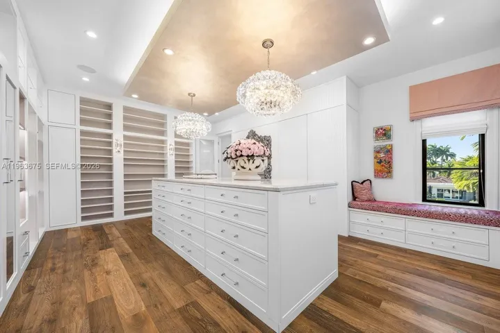 The main level reveals a breakfast room, butler’s pantry, executive office with cylindrical aquarium and custom millwork, wet bar, VIP guest suite, cabana bath, and integrated service spaces. The waterfront primary suite offers serene water views, his-and-hers spa-caliber baths, boutique-style dressing rooms, and a private balcony. Three additional ensuite guest suites, secondary laundry, media lounge, rooftop terrace with full bath and summer kitchen, saltwater pool and spa, two summer kitchens, climate-controlled garages with golf cart bay, and generator complete this exceptional Fort Lauderdale estate.