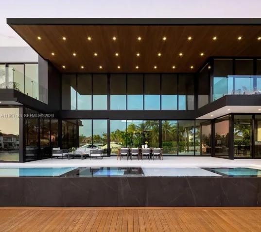 Brand-new two-story waterfront home with 100 feet of water frontage, direct ocean access, with boat lift. 7,515Sqf Open floor plan with 6 bedrooms and 5.5 bathrooms. Resort-style pool with swim-up bar and stools, hot jacuzzi, separate cold plunge, and kids’ shallow play area. Outdoor kitchen with premium grill, cooler and ice maker, large pantry, open kitchen, 2 dishwasher, 4 washers , 3 dryers, automatic iron machine. Whole-home surround sound (indoor and outdoor). Dual whole house water filtration system, large second-floor balconies. Covered 2-car garage. Playground with premium safety turf, fully equipped private gym and EV charging station.