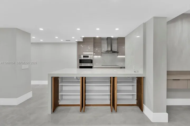 Walls were removed and redesigned to create a dramatic open-concept layout with expansive living spaces and seamless ocean-facing flow. Every finish was elevated: impact glass, wide-format designer flooring, custom cabinetry, waterfall-edge quartz, premium appliances, and statement lighting throughout.
