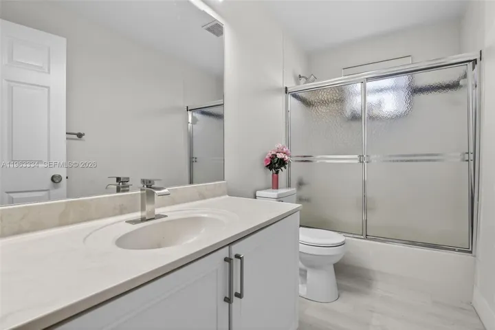 Beautifully updated Malibu model in the gated community Pembroke Falls. This bright and airy 4 bedroom, 2.5 bath home features an inviting open floor plan, vaulted ceilings, and abundant natural light. The updated eat in kitchen offers contemporary white cabinetry, granite countertops, island with serving bar, and pantry—ideal for everyday living and entertaining. The spacious primary suite includes a large walk in closet and bath with dual vanities, and a Roman soaking tub. Additional bedrooms are generously sized and versatile. Recent upgrades include fresh interior and exterior paint, luxury vinyl plank flooring, modern LED lighting, ceiling fans, and hurricane impact French doors. Enjoy outdoor living on the covered patio with fenced yard, accordion shutters, and room for a pool. Residents enjoy resort style amenities: clubhouse, heated pool and spa, fitness center, tennis, pickleball, basketball, ballroom, tot lots, four manned security entrances, and onsite management. HOA includes cable, internet, and alarm monitoring. Conveniently located near shopping, dining, major highways, and top rated Pembroke Pines schools.