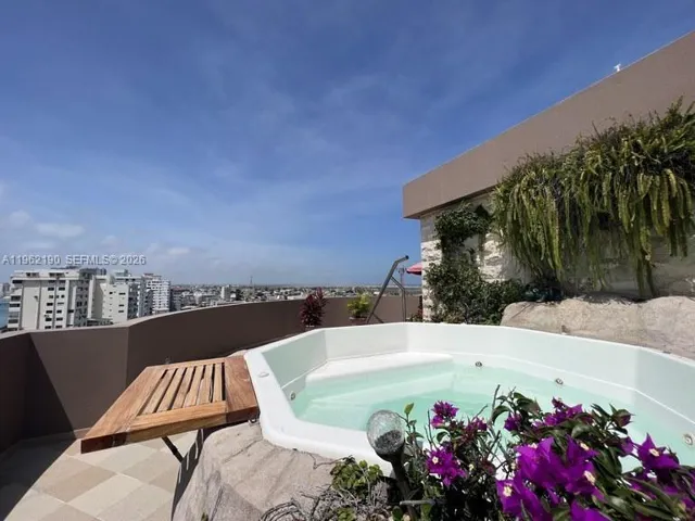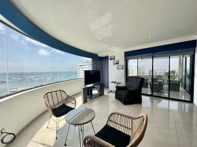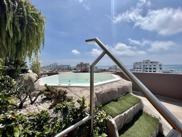 Unique penthouse. Perfect for entertaining. Game room. Stage, media room. Laundry room, maid’s quarters, kitchen nook. Snack bar. Engraved wood crown molding. One-way non-reflective marine glass. Private elevator entrance, wood walk-in closets. 120-degree blue pearl, 240-degree panoramic view, terrace jacuzzi, generator, golf and yacht club membership available. 25% financing available. The association fee reflects 18% of the building. Manager available. Close to the yacht club and fishing pier. State-of-the-art electric water heater. Air conditioning in 3 bedrooms, vane ceiling fans in 2 bedrooms