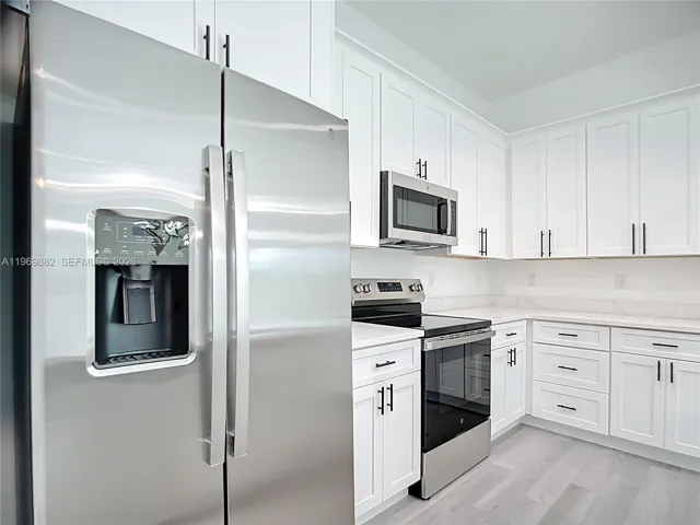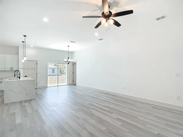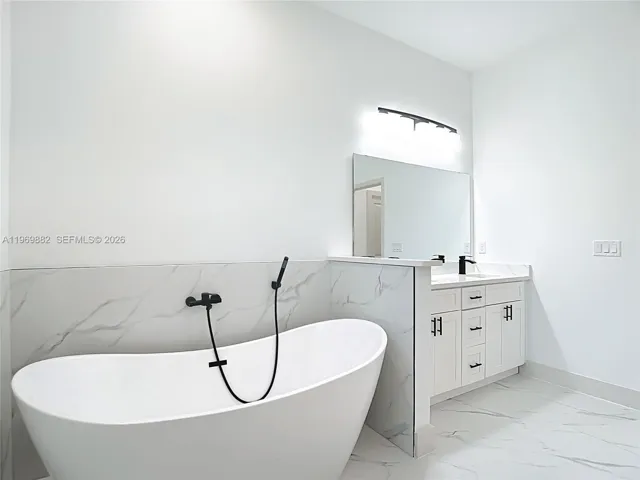 MODERN DESIGN MEETS EVERYDAY COMFORT. This elegant 4-bedroom, 2.5-bath home offers 1,696 sq. ft. of open-concept living space with contemporary finishes throughout. The kitchen features a quartz waterfall island with wood accents, sleek cabinetry, and bold dark fixtures. The living area includes an electric fireplace, creating a warm and inviting space. THE PRIMARY SUITE OFFERS A SPA-STYLE BATHROOM with a freestanding tub, dual sinks, and marble-style tile. Enjoy a covered lanai, paver driveway, and a two-car garage. With 2,412 sq. ft. of total construction, this home blends style and functionality, plus a smart key system and a 2-10 Home Buyers Warranty. SCHEDULE YOUR SHOWING TODAY.