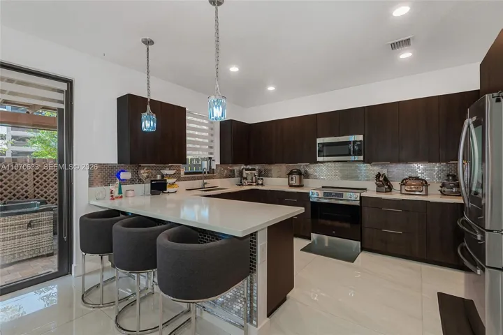 Experience the epitome of Doral living in this exquisite corner unit residence, perfectly situated for enhanced privacy within the prestigious Summit at Grand Bay. Spanning an impressive 2,100 sq ft, this beautiful townhouse has been meticulously upgraded with high-end luxury finishes and a sophisticated floor plan that places all bedrooms on the upper level. The interior boasts a sun-drenched eat-in kitchen and a grand primary suite featuring walk-in customized closets designed for the modern connoisseur. Transition seamlessly to your private outdoor sanctuary, where you can enjoy the beautiful pergola in the patio, an ideal setting for alfresco dining and upscale entertaining. As a resident, you gain exclusive access to world-class amenities, including a lavish clubhouse, resort-style pool, state-of-the-art gym, and a tranquil spa, all protected by a 24/7 guard-gated entrance. This pet-friendly estate is perfectly positioned near elite schooling and offers immediate access to Doral’s premier shopping and fine dining. An outlet for an electric car, a water softener, and a 5-ton AC.