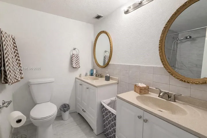 THIS IS A 55+ COMMUNITY. Unfurnished 1bed and 2 Full bathrooms on a second floor in a gated community with lake front. Enjoy a quiet, well kept community, clean and calm atmosphere. Unit features stainless steel appliances, large living/ dining room, tile flooring, enclosed balcony with garden view. One assigned parking spot, cable and water included. Laundry room close to unit.