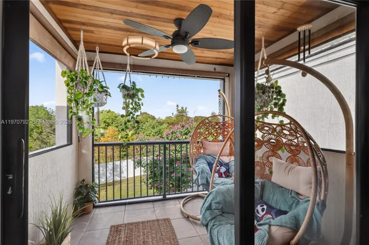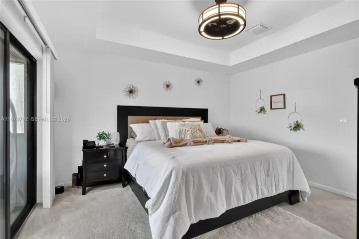 The master bedroom has tray ceiling and walk-in closet. It also has its own screened balcony, transformed into a peaceful, zen-inspired retreat — the perfect spot to unwind and talk about your day.
