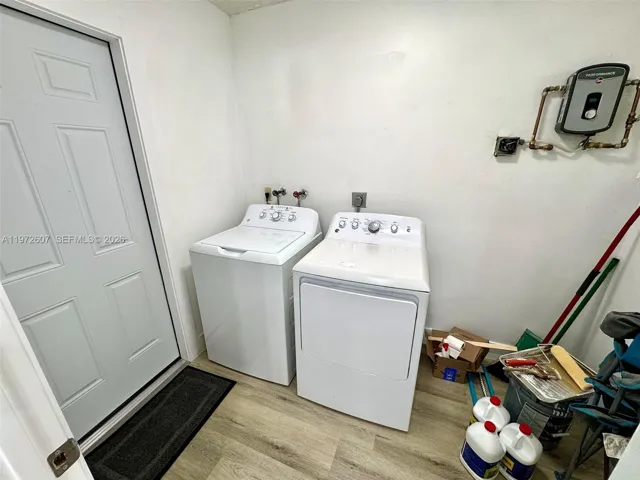 Bring your toothbrush! This one is completely remodeled. Be the very first to experience the brand new kitchen with stainless steel appliances and large island. Yes, there is a new garbage disposal. Huge bo-nus room (approximately 400 sf!) overlooking the green backyard with calming palms. Bathroom features oversized shower with glass enclosure. Tankless HWH. New windows. LED ceiling lighting in every room. Consistent, new laminate floors with wood grain look. Separate laundry room with brand new washer and dryer. You’ll love it!