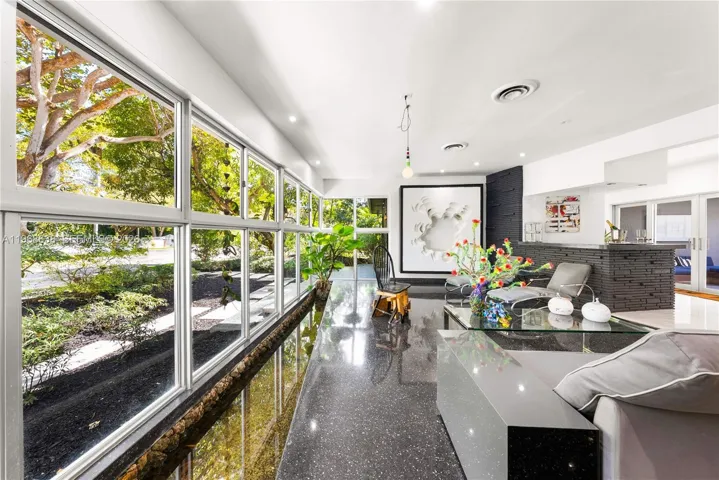Set on one of the most coveted streets in guard-gated Morningside, this architectural gem rests on an expansive 12,633 sq. ft. corner lot enveloped in lush tropical foliage with serene garden vistas visible from every room.