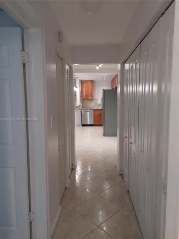 Beautiful Apartment, 1 bedroom, 1.5 baths on the first floor with covered balcony and shutters. Updated kitchen and bathrooms, tile floors, 3 huge closet spaces. The remodeled open kitchen and new stainless steel appliances. 26-unit building. Apartment with pool view. Outdoor hallway and stairs. Building 1 block from US1,