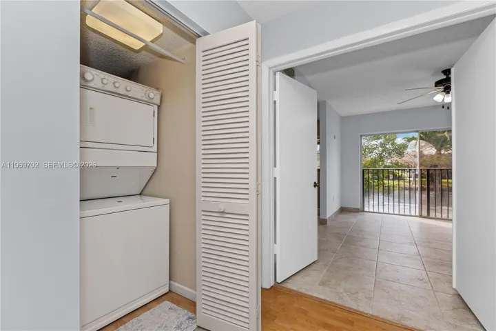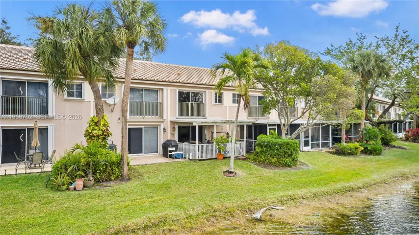 Spacious and bright living area featuring 2 bedrooms, 2.5 bathrooms, Enjoy serene lake views from the patio and the primary bedroom. Additional space can be used as Den/Office, etc. Freshly painted throughout with laminate flooring and ceramic tile in the primary bedroom. Accordion hurricane shutters. NEW Roof. A well-maintained community, conveniently close to shopping, dining, entertainment, and major highways.
