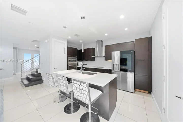 Spectacular 4-bed, 3-bath townhouse in the heart of Landmark at Doral. This unique model features a rare first-floor guest suite with a private bath and a professionally adapted private office in the garage area, perfect for remote work. Enjoy 3-car parking and premium impact doors/windows. Open kitchen layout with ample cabinetry, ideal for entertaining. Located across from a tranquil nature reserve for unparalleled privacy. Resort-style amenities include a first-class clubhouse, pool, and gym. Near top-rated schools and major highway.