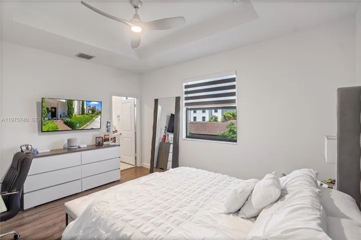 Beautifully upgraded 3-bed, 2.5-bath villa (largest model with 1,667 sf) in the highly desirable Vistas at Via Ventura community. This home stands out with custom designer landscaping that elevates its curb appeal, upgraded with elegant wood floors on the second level and staircase, and a modern double glass door separating the living & dining areas from the spacious open kitchen. The oversized kitchen offers plenty of room for a breakfast area & a cozy family space overlooking the large patio, ideal for gatherings or simply relaxing. Additional upgrades include impact windows and doors, brand-new smart A/C system, & infinite water heater. The community has a very low HOA and resort-style amenities, including a pool, gym, banquet hall & beautiful walking areas. A must-see property that combines comfort, style, and value. hoa: $400. SOCCER, RUNNING AND MULTIPURPOSE FIELD ALREADY IN CONSTRUCTION! SELLER CONTRIBUTION! ASK ME FOR VIDEO WALKTHROUGH!