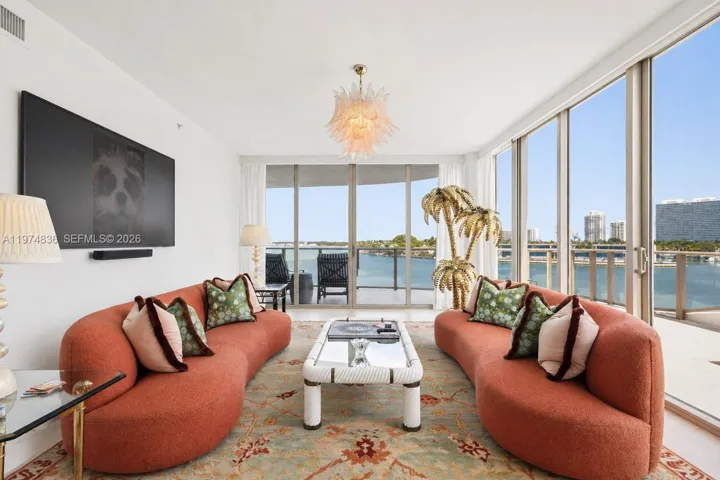 Wake up everyday to sparkling turquoise water and shimmering skyline views in this one of a kind, corner residence! Onda #506 offers 3,523 interior and 1,526 exterior square footage. The wrap around terrace provides true South Florida indoor outdoor living! Bespoke design with the finest window treatments and wall coverings by Elizabeth Ghia Interiors includes a private elevator foyer welcoming guests to your home! Features include vintage Murano chandeliers, Snaidero kitchen with marble countertops and premium Miele appliances. 4 bedrooms each with en suite baths and oversized closets. Floor to ceiling sunrise and sunset views. The cherry on top of #506 is the one of kind media den transformed into the chicest movie room in Miami! A waterfront, boutique enclave of only 41 owners offering all the conveniences of a private home with the luxury of a white glove condo! Ugo Colombo’s ‘Onda’ by award-winning Arquitectonica includes a stunning infinity edge, rooftop pool, jacuzzi, and dining area along with 24 hour security. You’ll enjoy valet or self parking (2 spots), a modern gym, private spa, yoga room, steam, sauna, treatment areas, EV chargers, individual storage area, paddleboards, and kayaks! The Bay Harbor / Bal Harbour zip code is one of the hottest residential areas in the country with residents enjoying the Bal Harbour Shops, restaurant lined streets, and the beach lifestyle.