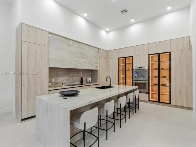 Completely reimagined, thoughtfully designed estate in the prestigious Stonebrook Estates community. Offering over 5,000 sqft of luxury living with no detail overlooked. Featuring soaring 21 ft. high ceilings, custom millwork, a dramatic floor-to-ceiling fireplace, and large windows allowing natural light to flood the home throughout, creating an indoor-outdoor flow. This home delivers a level of finish rarely found in the community. The chef’s kitchen, highlighted in Taj Mahal porcelain, features an oversized waterfall island, sleek custom cabinetry, premium appliances, & a built-in illuminated wine wall. The primary suite offers a boutique-style custom closet and spa-inspired bath retreat. Additional highlights include a dedicated office, media room, impact windows & doors, a custom wet bar, and a spacious 3-car garage.