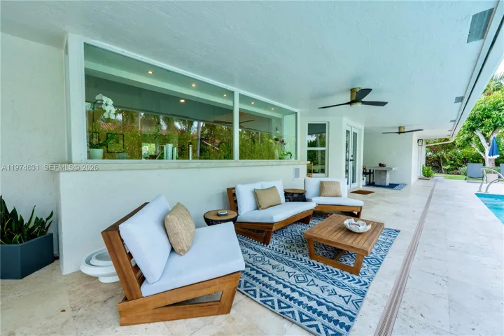 The custom designed kitchen features double oversized islands, high-end built-in appliances, and natural stone (Taj Mahal quartzite). *Impact windows and doors are installed throughout. Three of the five bedrooms offer en suite baths, providing comfort and privacy. All bathrooms showcase cohesive, premium finishes, including top-tier cabinetry, real Chateau marble and wood-look tile (from Spain).