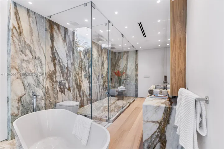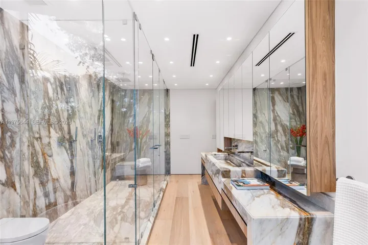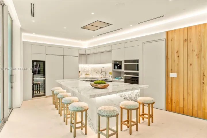 Introducing a brand-new Tropical Modern ARCHITECTURAL MASTERPIECE in North Coconut Grove set on an oversized 11,550 SF lot. Designed by renowned architect Simon Bissu and developed by Luxom Developments, this 6,194 SF residence offers 8 beds and 8.5 baths with refined finishes including natural limestone, marble, & warm wood tones. Lush, intentional landscaping leads you past a majestic oak tree the home was designed around and into your foyer which flows to a dramatic great room with floor-to-ceiling telescopic doors overlooking the resort-style pool and greenery beyond. The chef’s kitchen features premium appliances, a walk-in pantry, and staff quarters. First floor offers 3 bedrooms with access to the expansive front yard, while upstairs features 5 ensuite bedrooms and a large family room with a treetop balcony. The serene primary suite includes telescopic doors overlooking your yard, a spacious walk-in closet, and a spa-like marble bath. A rare opportunity to own a truly one of a kind newly built estate in one of the Grove’s most coveted locations. Near top schools, Cocowalk, Brickell, Downtown Miami, and all that Miami has to offer!