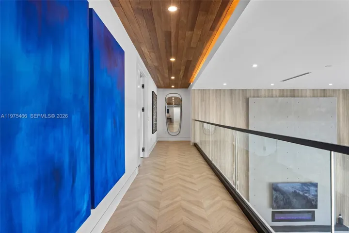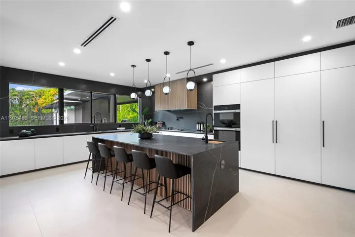 Welcome to a stunning new luxury home in the heart of Pinecrest. This expansive estate offers 8,673 sqft of living space with 7 beds and 7.5 baths in the main house, and a 1/1 guest house. Enter via a floating bridge flanked by water features, leading to elegant interiors with hardwood and tile floors, custom lighting, and a chef’s kitchen featuring premium appliances. The primary suite includes a custom walk-in closet, marble-clad bath, and a hidden safe room. A concealed media room adds flexible space for a theater, studio, or playroom. Additional features include a wine cellar area, elevator shaft, laundry room, and a private backyard with a pool, lighted tennis court, 3 balconies, and lush landscaping with fruit trees. This extraordinary home offers the ultimate in luxury and privacy.